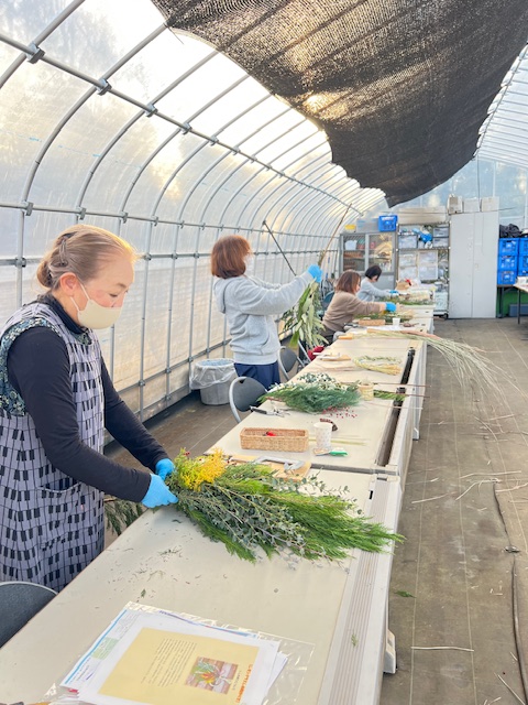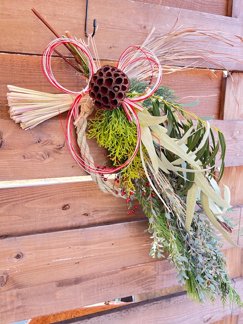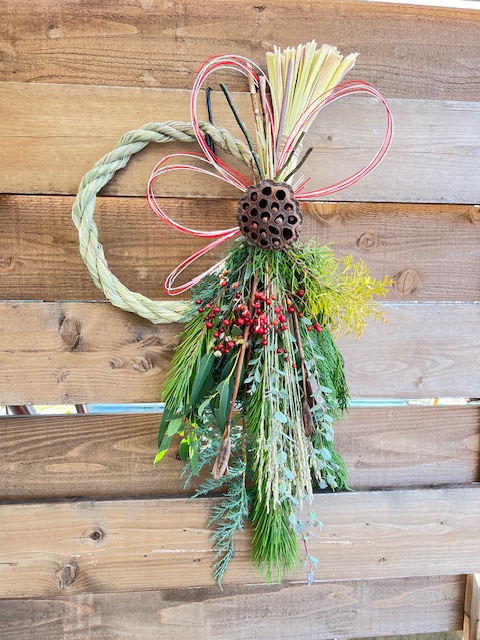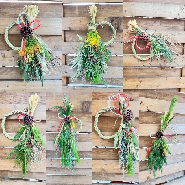 同じ花材でも植物なので、それぞれ出会った個性の形を生かしたしめ縄やスワッグの作品は、唯一無二で素晴らしい作品が出来上がって嬉しい限りです。